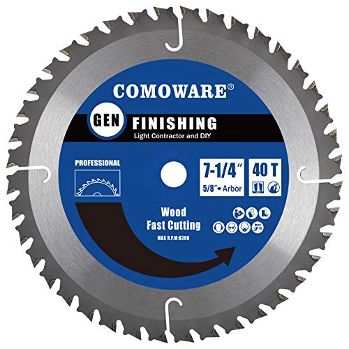 1. COMOWARE Circular Saw Blades 7 1/4 inch - 40 Tooth ATB, Premium Tip, Anti-Vibration with 5/8 inch Arbor Light Contractor and DIY General Purpose for Wood, Laminate, Veneered Plywood & Hardwoods