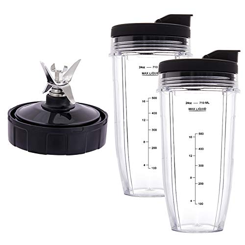 Revorit Blender Replacement Parts for Ninja, 2 24oz Cups with To-Go Lids, 7 Fins Extractor Blade, for Nutri Ninja Auto iQ BN801 SS101 BL480-30 BL641 BL642-30 (5 Pack) | 9.56 | Check Price |