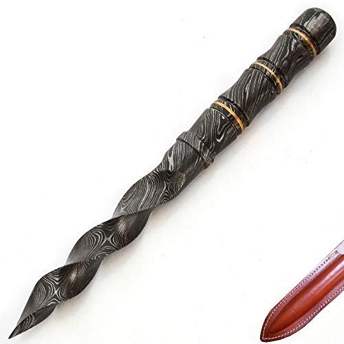 7. 10 Inch Handmade Forged Damascus Steel Fixed Blade Hunting Tri-Edge Kris Dagger Knife with Leather Sheath WE-ALSO-MAKE Sharp Chef Cleaver Bowie Axe Sword Pocket Outdoor Knives Full Tang Handle 9815