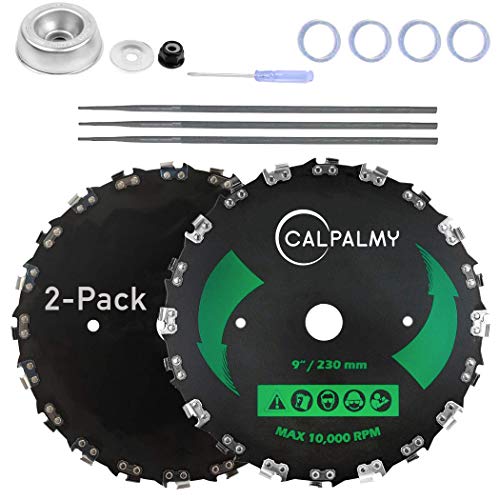 7. CALPALMY (2-Set) 9″ x 20T Chainsaw Tooth Brush Blades Tool Kit, – 2 Blades, 3 Assorted Round Files and 4 Washers | for Cutter, Trimmer, Weed Eater | Made from Carbon Steel, Cuts Like Butter