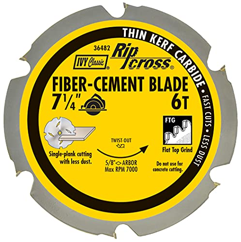 IVY Classic 36482 7-1/4″ 6 Tooth Fiber-Cement Cutting Carbide Circular Saw Blade with 5/8″ Diamond Knockout Arbor, 1/Card | 9.36 | Check Price |