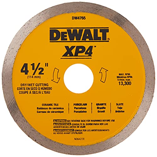 7. DEWALT Diamond Blade for Porcelain Tile, Wet/Dry, 4-1/2-Inch (DW4765)