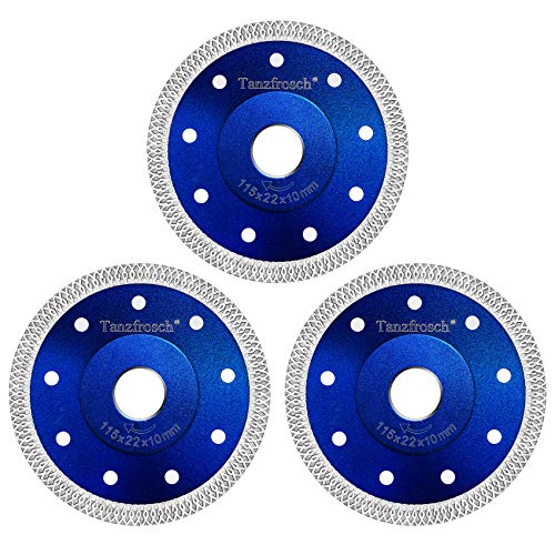 2. Tanzfrosch 4.5 inch Diamond Saw Blade 4.5″ Cutting Disc Wheel for Cutting Porcelain Tiles Granite Marble Ceramics Works with Tile Saw and Angle Grinder (3 Pack, Blue)