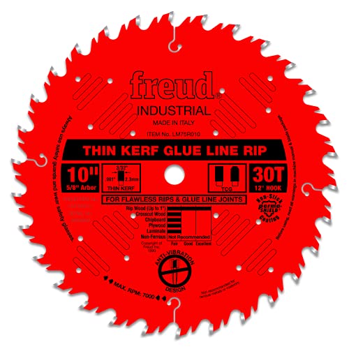 6. Freud 10″ x 30T Industrial Thin Kerf Glue Line Ripping Blade (LM75R010), Multi