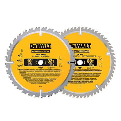 | 7 | DEWALT 10-Inch Miter / Table Saw Blades, 60-Tooth Crosscutting & 32-Tooth General Purpose, Combo Pack (DW3106P5) | 9.36 | Check Price | |