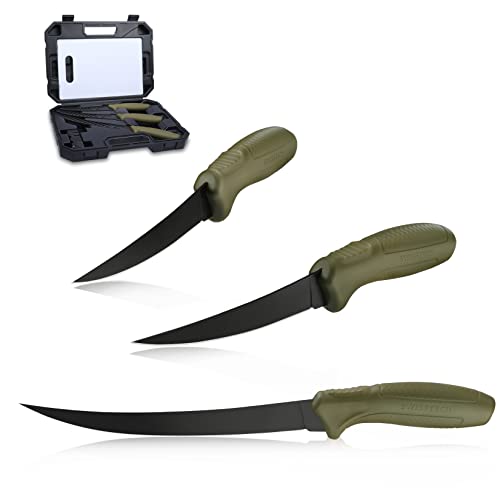 - Easy Carry Case: Each knife, the sharpening steel and a durable cutting board are packed in an impact-resistant carrying case for ease of use and storage. When you’re ready to fish, just grab and go.