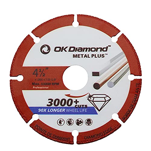 - 😜LONG LIFE - Metal cutting blade according to the test results, OKDIAMOND enables to make more than 3000 cuts. Increased lifetime of this cut off wheel is ensured by high-temperature plasma soldering and a new generation of diamond grit in the segment. And our cut wheels have no wear and tear after work , it does not wear down like bonded abrasives