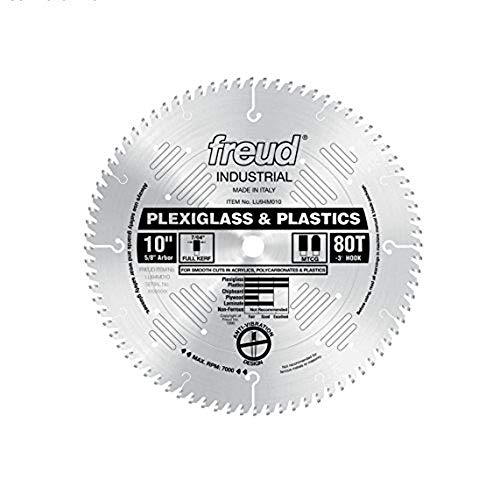 Freud 10 In 80 Tooth Plexiglass&Plastic Cutting Saw Blade 5/8 In Arbor LU94M010 | 9.36 | Check Price |