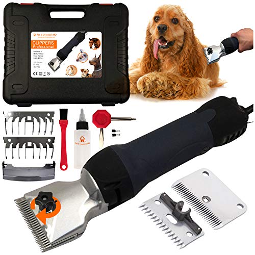 7. Pet & Livestock HQ 380W Professional Dog Grooming Clippers Kit, Dog Haircut Machine, Heavy-Duty, Electric Hair Trimmer only for XL & Large Dogs with Thick Coats, Horses, Equine, Cow, 2 Blades, 2 Guard