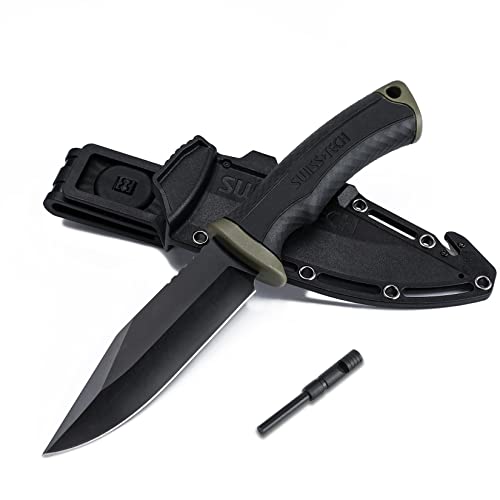 4. Swiss+Tech 4-7/8” Survival Knife, Fixed Blade Knife with Sharpener & Fire Starter for Camping, Outdoor and Bush craft, Nylon Handle, Sheath Included