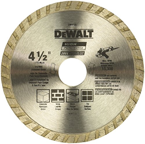 | 8 | DEWALT Diamond Blade for Masonry, Dry Cutting, Continuous Rim, 7/8-Inch Arbor, 4-1/2-Inch (DW4725) | 9.36 | Check Price | |