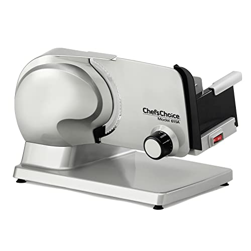 1. Chef’sChoice 615A Electric Meat Slicer Features Precision thickness Control & Tilted Food Carriage For Fast & Efficient Slicing with Removable Blade for Easy Clean, 7-Inch, Silver
