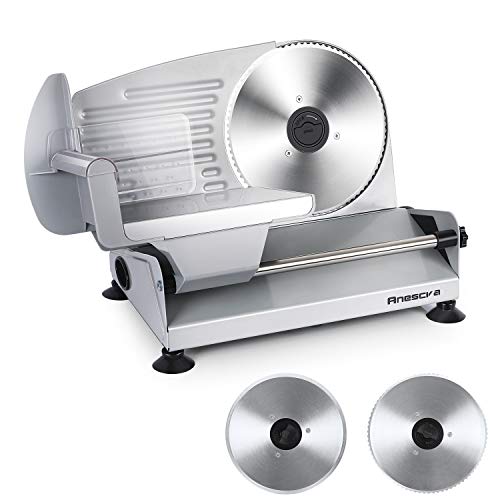 | 4 | Meat Slicer, Anescra 200W Electric Deli Food Slicer with Two Removable 7.5’’ Stainless Steel Blades and Food Carriage, Child Lock Protection, 0-15mm Adjustable Thickness Food Slicer Machine- Silver | 9.68 | Check Price | |